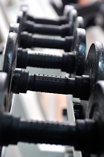 For the initial four weeks of this 12-week dumbbell workout plan, a frequency of three workouts per week is recommended. This allows for adequate recovery between sessions, crucial for muscle repair and growth, as outlined in the accompanying PDF. Spacing workouts with rest days prevents overtraining and reduces the risk of injury, particularly important when establishing proper form.