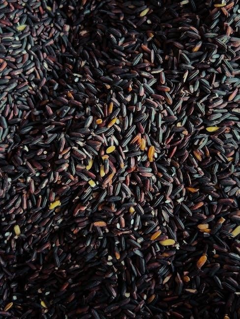 Brown rice, being denser, requires more water; typically a 1:2 ratio (one cup rice to two cups water) is recommended. The PDF guide provides specific ratios for various rice types, including jasmine, basmati, and long-grain varieties. Precise measurements, as outlined in the manual, are crucial for optimal texture and preventing undercooked or mushy rice. Always refer to the instruction manual for the most accurate guidance.